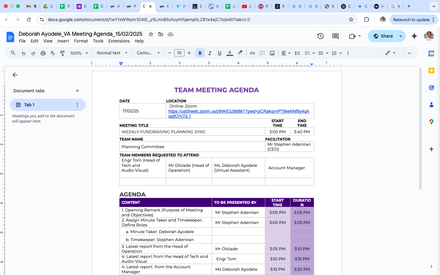 Hi, I'm Deborah Iyanuoluwa Ayodele, your dedicated virtual assistant specializing in Google Workspace tools like Docs, Sheets, Slides, Calendar, and Meet. I’m here to help streamline your workflow, optimize your productivity, and ensure your digital tasks are managed efficiently. With a strong foundation in these essential tools, I assist clients with everything from organizing and managing data in Sheets to creating polished presentations in Slides, coordinating schedules through Calendar, and facilitating seamless communication with Meet. My goal is to help you focus on what truly matters by taking care of the behind-the-scenes details. Whether you’re looking for help with day-to-day tasks, document management, data analysis, or scheduling, I bring reliability, precision, and a proactive approach to each project. Let’s work together to make your life easier and your business more productive.